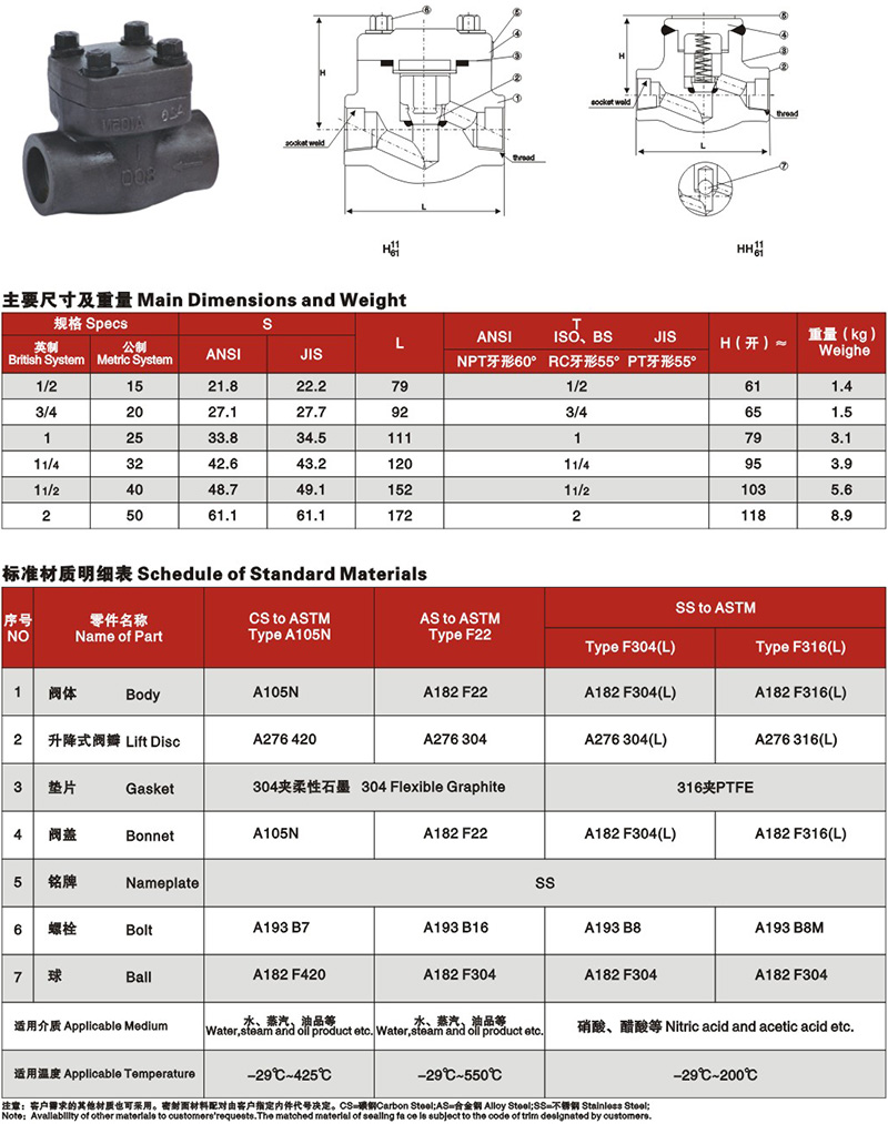 鍛鋼低溫截止閥    鍛鋼自密封升降式止回閥